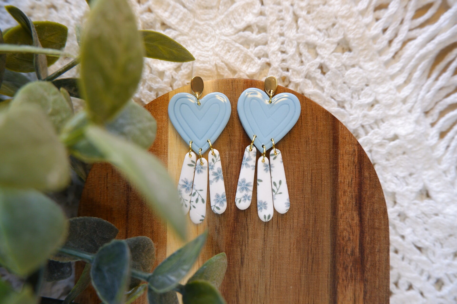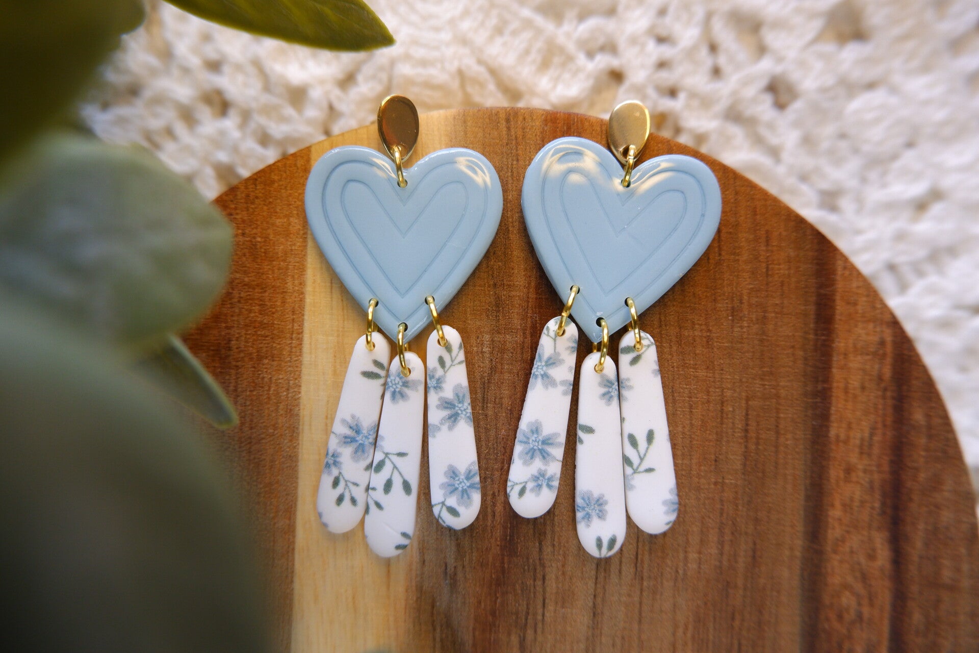 🌼 Design : Pâte polymère bleu ciel et blanc avec fleurs bleues délicates